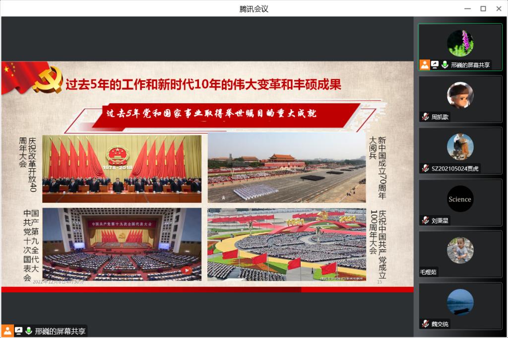 党委委员、党委副书记魏媛媛教授在科学楼B座713会议室,通过线上线下相结合的方式为信息对抗技术教工党支部、信息对抗技术学生党支部、研究生第一党支部进行了党的二十大精神的宣讲。