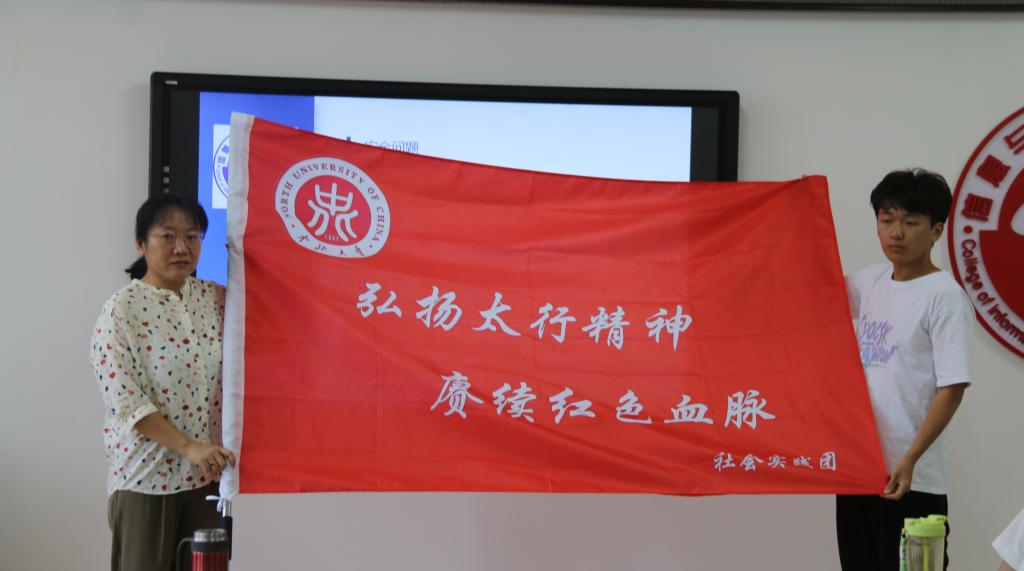 暑期社会实践队授旗。暑期社会实践活动是贯彻落实党的教育方针的重要举措,是深化实践育人的重要载体,希望同学们都能积极投身社会,在实践出真知、长才干、做贡献。