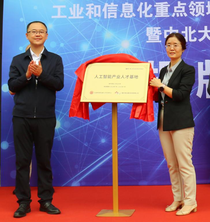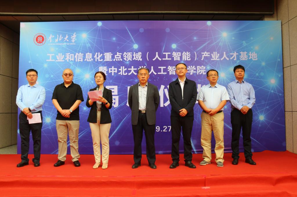 9月27日上午,我校人工智能产业人才基地暨人工智能学院正式揭牌。工业和信息化部人才交流中心教育培训处处长曲来军、 山西省工业和信息化厅技术创新处副处长张莉娜与我校副校长苏铁熊共同为(基地)学院揭牌。学校教务部、创新创业学院、 第一会所