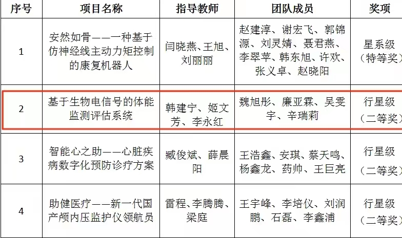 学生的项目《基于生物电信号的体能监测评估系统》完成利用人体运动时产生的心电信号、肌电信号、姿态变化信号实现体能的实时监测和远程数据回传的功能,获得“行星”级荣誉!