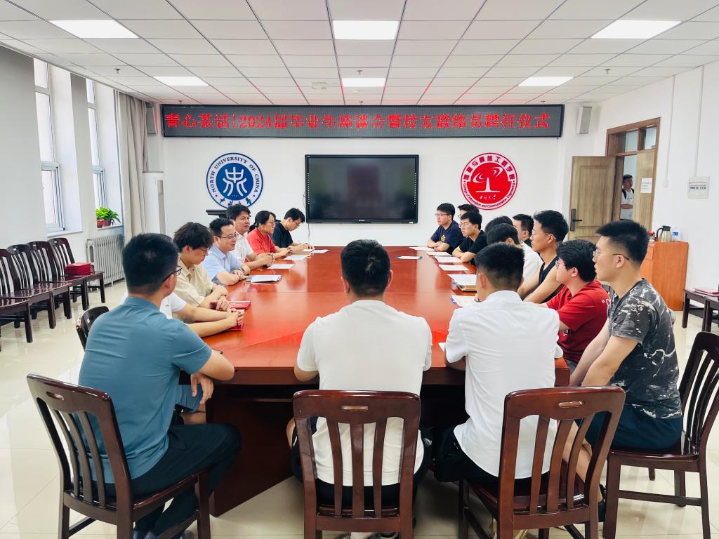 在科学楼B座713会议室召开2024届毕业生座谈会暨校友联络员聘任仪式。学院党委书记曹凤才、院长陈平、党委副书记魏媛媛出席,就业辅导员孟伟、左冠华和毕业生代表参加座谈会。座谈会由魏媛媛主持。