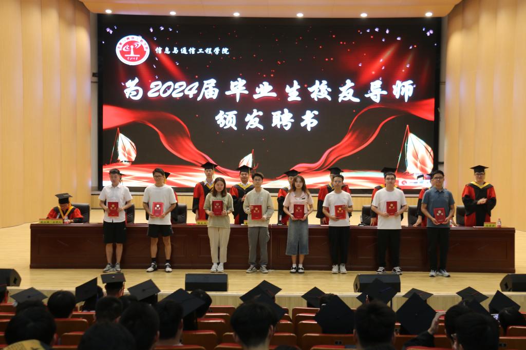 接着,毕业生代表张佳炘同学发言,她回忆了自己与信通的青春故事,感恩母校,恩师,表达了接续奋斗、回报母校、回报祖国的决心。在校生代表吴宜轩同学发言,祝愿学长、学姐们在日后事业中鹏程万里,前程似锦。教师代表孙鹏希望同学们使命在肩,做矢志报国的奋斗者;自强不息,做致知于行的践行者。