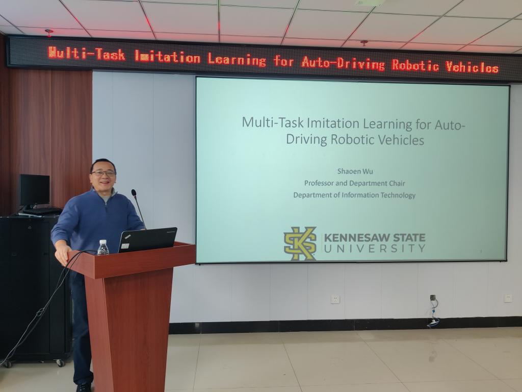 在科学楼B座715会议室成功举办了研究生第20240510期华彩讲坛。本次讲坛邀请了肯尼索州立大学的伍绍恩教授主讲,题为《Multi-Task Imitation Learning for Auto-Driving Robotic Vehicles》,讲座由李凯教授主持,学院广大教师和研究生积极参与了此次讲座。