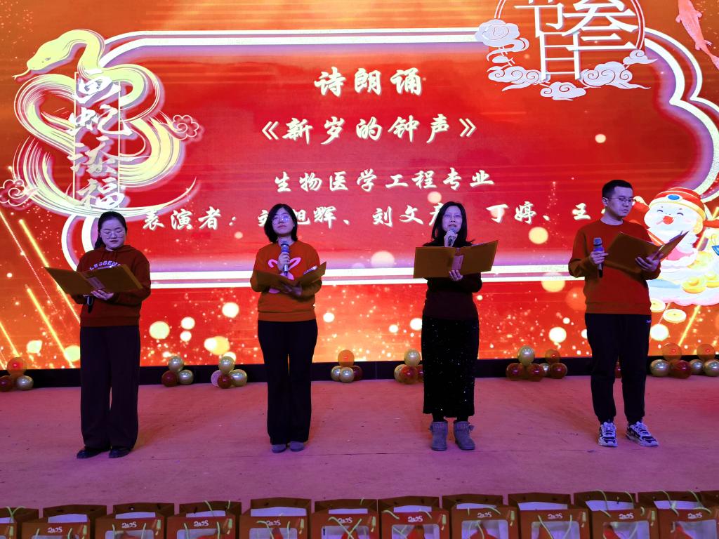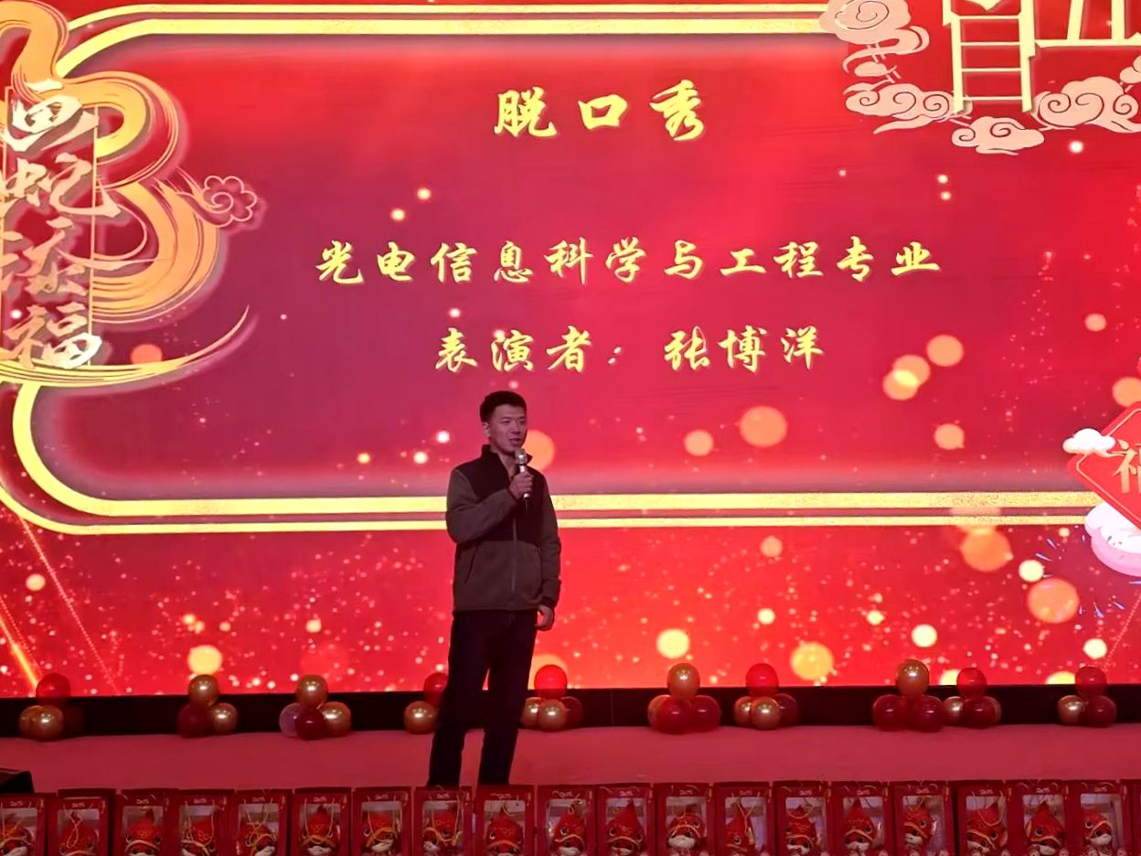联欢会上节目形式多样,丰富多彩,有舞蹈、合唱、小品、脱口秀、趣味配音、诗朗诵等8个节目,节目当中穿插游戏和抽奖环节,现场不断爆出阵阵掌声。联欢会在行政工会小组舞蹈《红日》拉开帷幕,人工智能专业的小品《无悔芳华》通过访谈的形势回忆了中北建校83周年的峥嵘岁月,信息对抗技术专业的合唱《相亲相爱一家人》将联欢会推向了高潮,生物医学工程专业的诗朗诵《新岁的钟声》为大家带来了新春的祝福,通信工程专业《趣味配音》和光电信息科学与工程专业《脱口秀》用他们精湛的技艺为大家带来了听觉盛宴,赢得了连连掌声。最后电子信息工程专业的合唱《一路生花》为这场盛会画上了一个完美的句号。