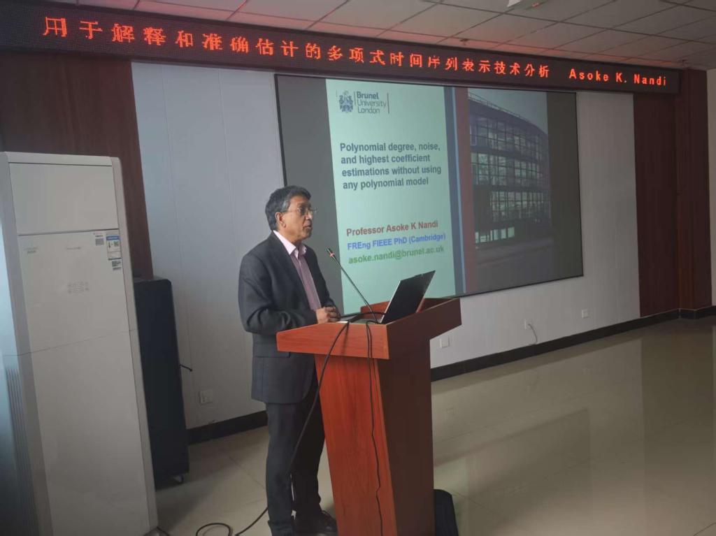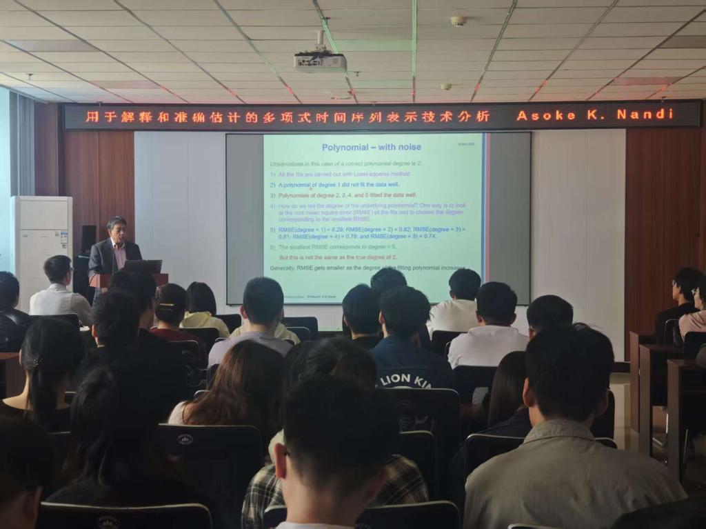在科学楼B座715会议室成功举办了研究生第20250503期华彩讲坛。学院邀请英国布鲁内尔大学电子与计算机工程系教授、英国皇家工程院院士Asoke K.Nandi主讲,题为《用于解释和准确估计的多项式时间序列表示技术分析》,讲座由副院长陈友兴主持,学院广大教师和研究生积极参与了此次讲座。
