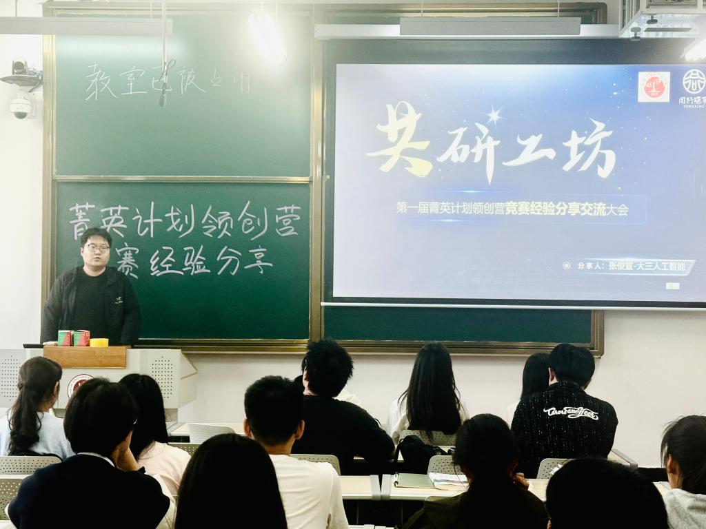 5月18日,“菁英计划”在17103Z教室举办“第一期“共研工坊”,“菁英计划领创营”负责人张俊宣分享了各大赛事备赛经验。40余名没有竞赛经验的成员参与了活动。