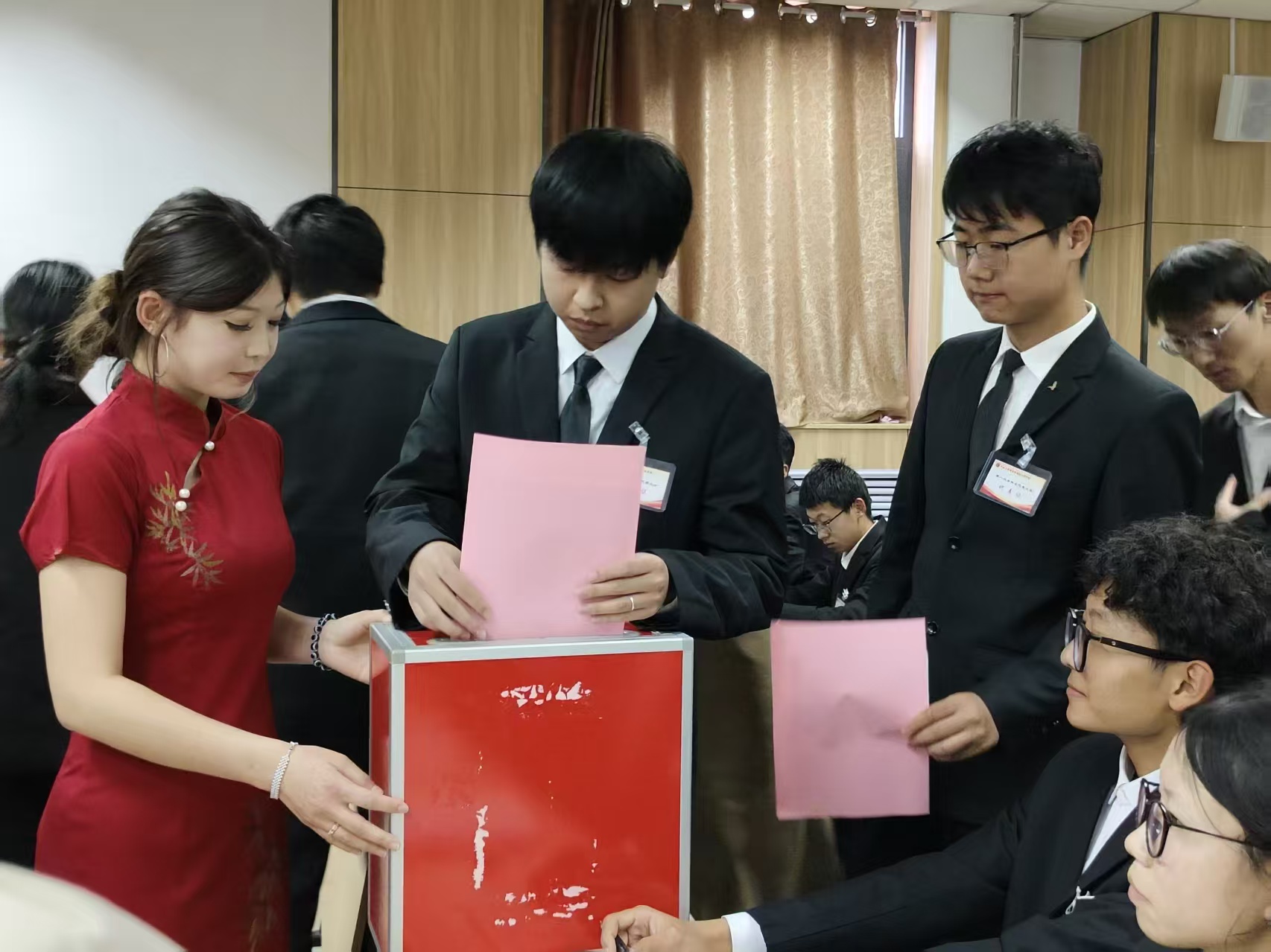 大会表决通过了总监票人、监票人,总计票人、计票人名单及选举办法,并投票选举产生了新一届学生会主席团、研究生会主席团成员和第一会所
