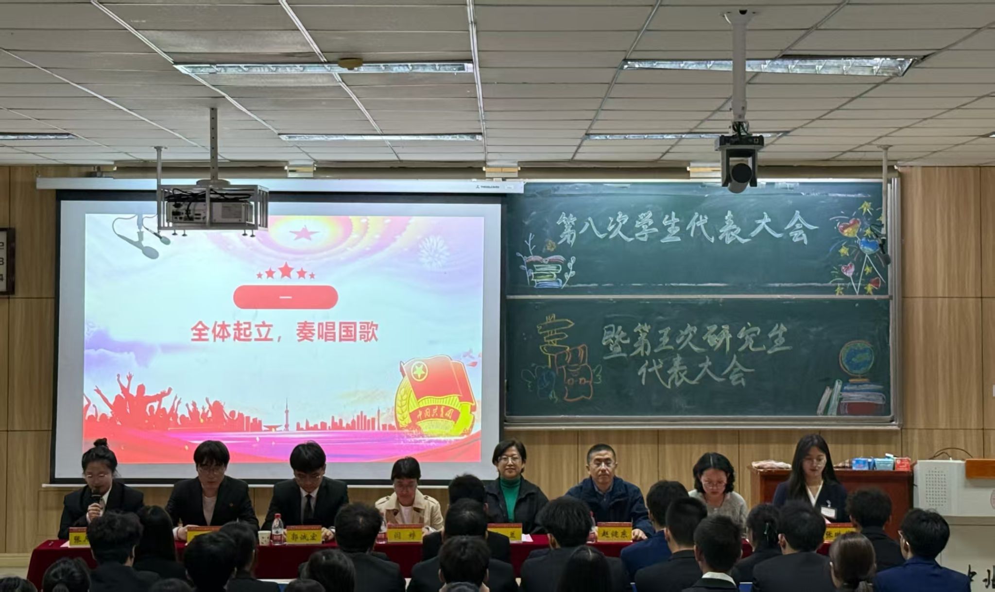 第八次学生代表大会暨第五次研究生代表大会在学院09201H隆重举行。学院党委副书记兼副院长么兰、团委书记闫婷、学生科赵健东老师、张华荣老师,研究生会、学生会主席团成员及全体学生代表共同参加会议。