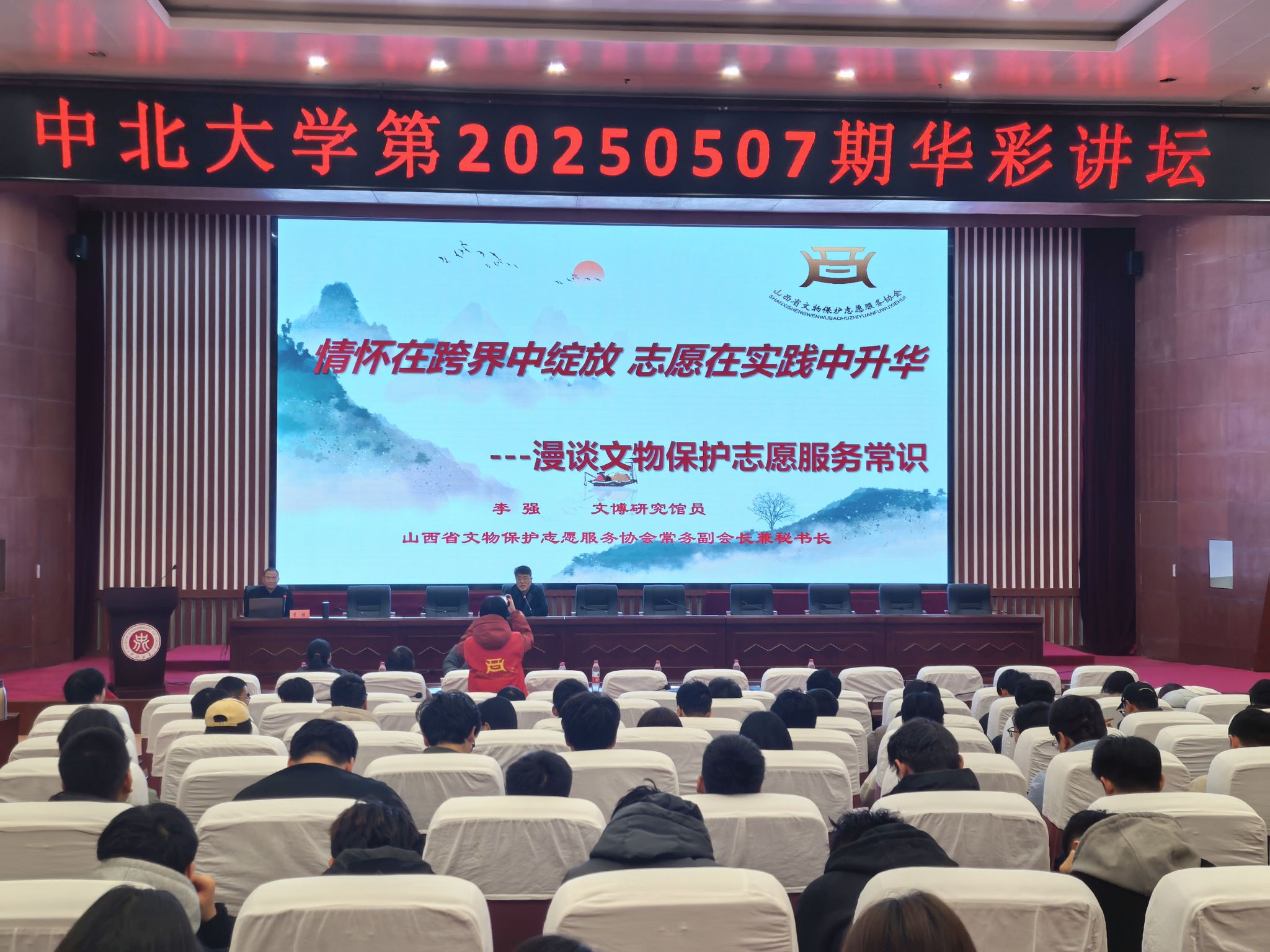 (人工智能学院)在图书馆五层学术报告厅成功举办了研究生第20250507期华彩讲坛。本次讲坛特邀山西省古建筑与彩塑壁画保护研究院(山西古建筑博物馆)文博研究馆员、山西省文物保护志愿服务协会副会长兼秘书长李强老师主讲,题为《情怀在跨界中绽放 志愿在实践中升华——漫谈文物保护志愿服务常识》。讲座由第一会所