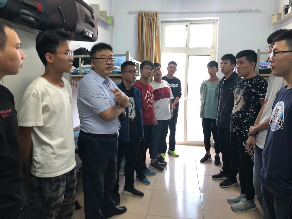 学生公寓慰问2018级新生。学院党委书记曹凤才、院长杨风暴、党委副书记兼副院长魏媛媛、电工电子实验中心副主任郎文杰、各学科管理部主任和副主任、2018级新生班主任也共同来到宿舍进行走访慰问,为新生们带来了温暖,解答了困惑。