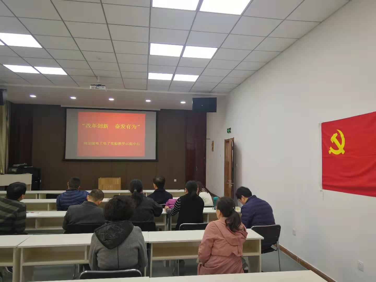 2019年3月12日下午,电工电子实验教学中心教工党支部在中心三层会议室召开了“改革创新,奋发有为”大讨论集中学习会,支部全体党员参加了会议,会议由支部书记郎文杰主持。