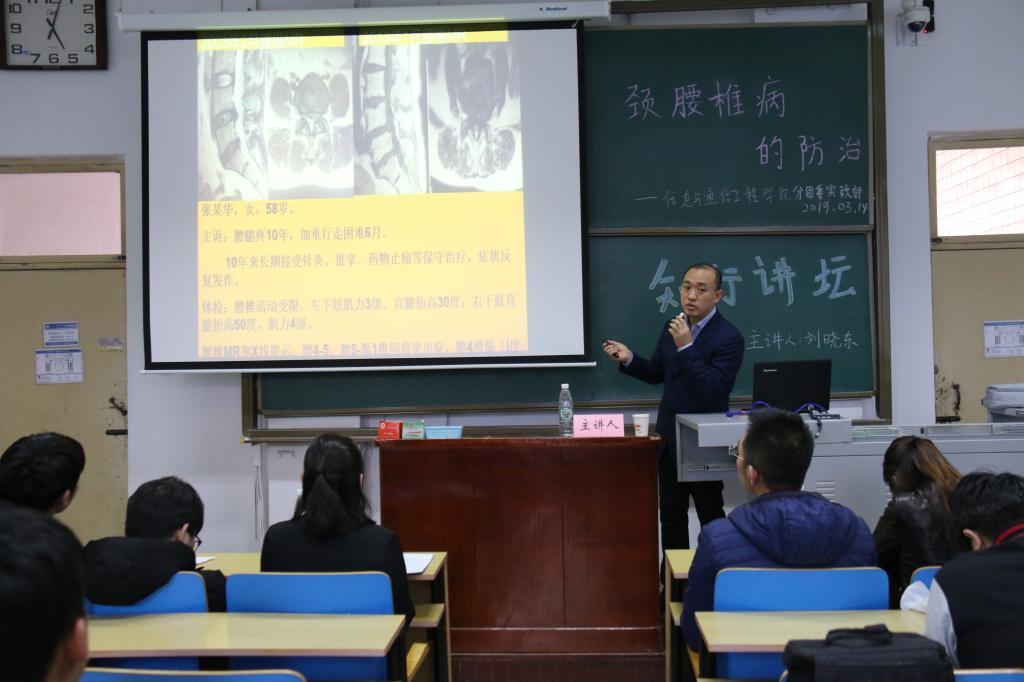 举办了一场以《颈腰椎病的防治》为主题的知行讲坛。本次讲座邀请到山西医科大学第一医院神经外科科副主任刘晓东担任主讲嘉宾。刘晓东是中国医师协会神经外科医师分会脊髓脊柱专家委员会全国委员,擅长颈腰椎病的微创精准治疗。
