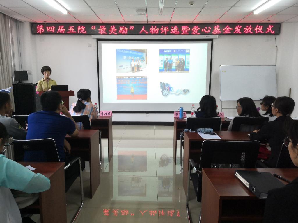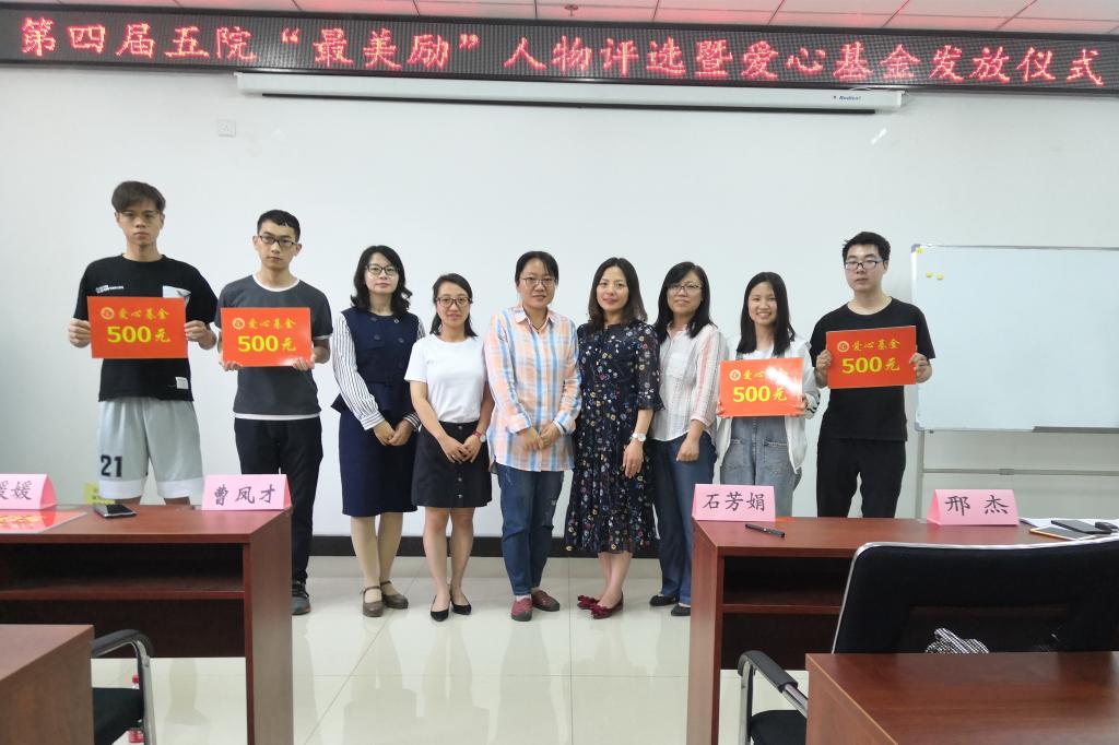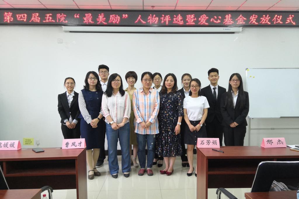 第四届“最美励”人物评选暨爱心基金发放仪式在科学楼B座715会议室举行。学院党委副书记、副院长魏媛媛、学生科科长任雁、团委书记闫婷、学生科老师邢杰、石芳娟参加了本次活动。