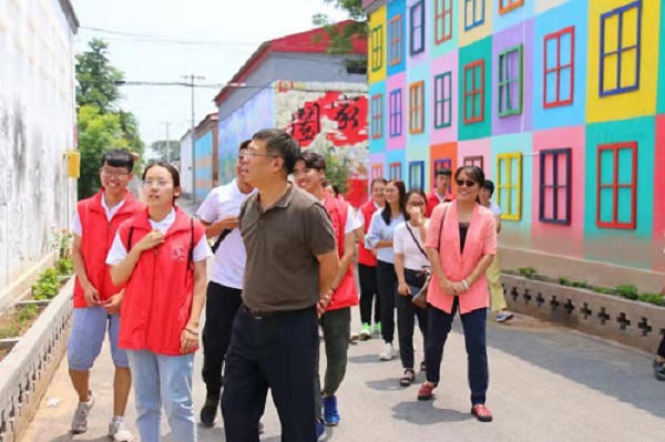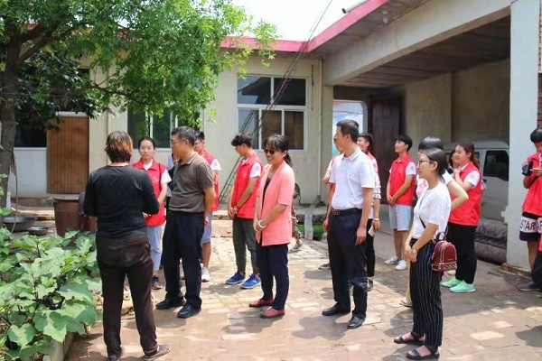 简单的慰问之后,薛书记已经迫不及待的想要实地了解实践情况,在全体实践团成员的带领下,薛书记一行人走访了前三天的实践地点,和大家一起体验实践的过程,同时肯定了实践队的实践成果。随后薛书记来到了队员们寄宿的村民家,走进院子,豆角、柿子树、苹果树还有那一筐一筐的西红柿,不禁让书记感叹这农家生活的美好,房东奶奶还热情的送上小苹果,书记接过苹果,连声道谢,他亲切询问了同学们的生活情况,同时对热情接待我们的村民表示衷心的感谢。