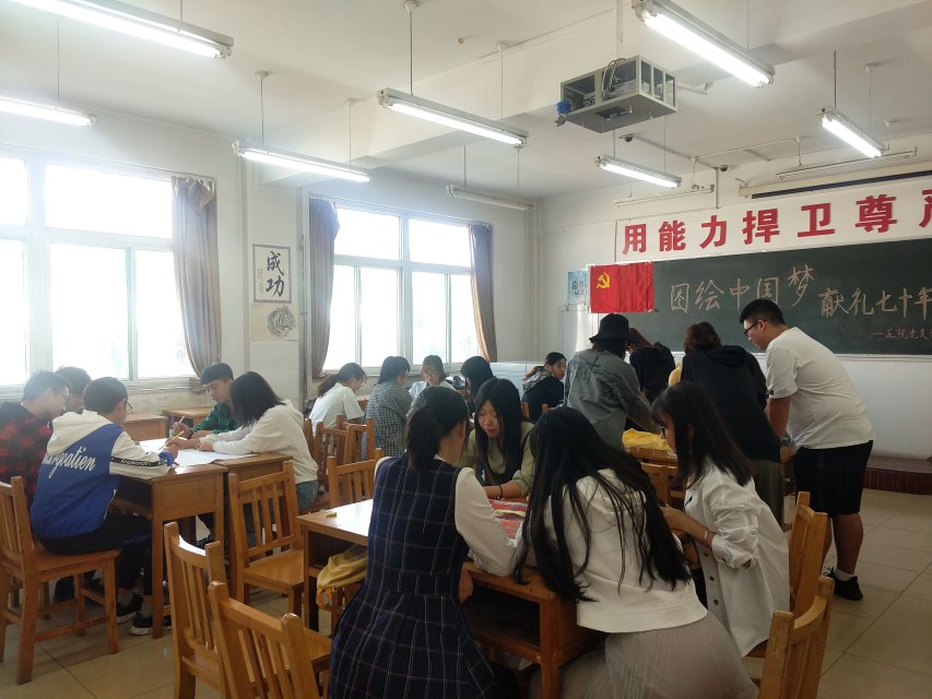 学生党支部特举办“图绘中国梦,献礼七十年”绘画活动。本次活动举办时间为2019年9月28日上午9点,地点在10409教室,由第一会所