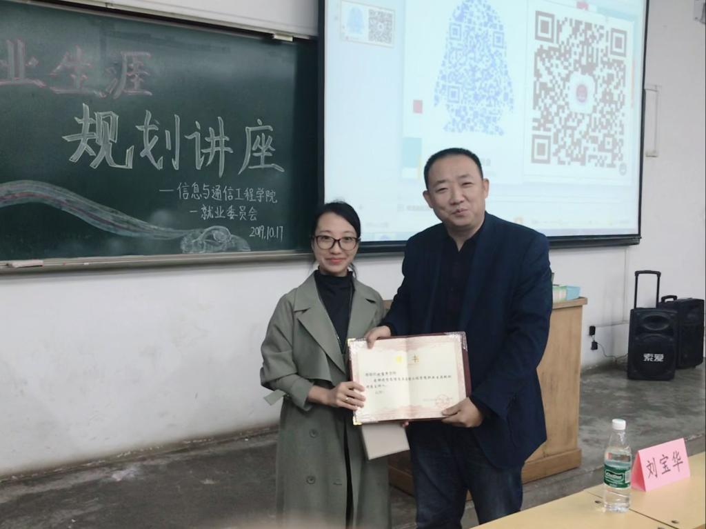 会上,刘宝华老师就目前大学生对自身职业生涯规划不清晰、职业价值判断的标准趋向务实化、职业生涯规划教育缺乏针对性等问题,结合自身经历与所见所闻提出合理的解决方案。以互动的形式引导同学们正确的认识自身的个性特质、现有的与潜在的资源优势;帮助同学们重新定位自身价值;使同学们树立明确的职业发展目标,引导同学们找准与实际相结合的职业定位,发现职业机会。