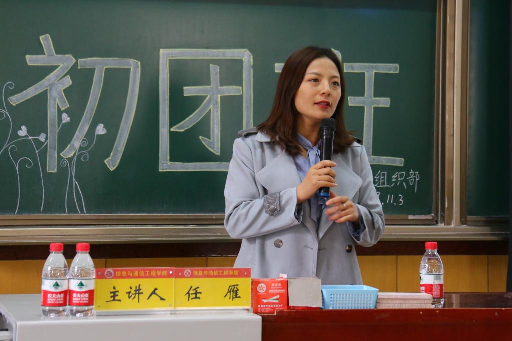 在第二天的初团班培训中,蔡文钊同学为大一班团干部做了团务知识培训;闫婷老师指出做好一名学生干部最重要的是做好自己本职工作。任雁老师做了题为《学生干部工作实务中的“误”与“悟”》,她讲到,“你只是看起来很努力”,青年学生要勇于进取、砥砺奋斗,不要让努力仅仅感动自己。