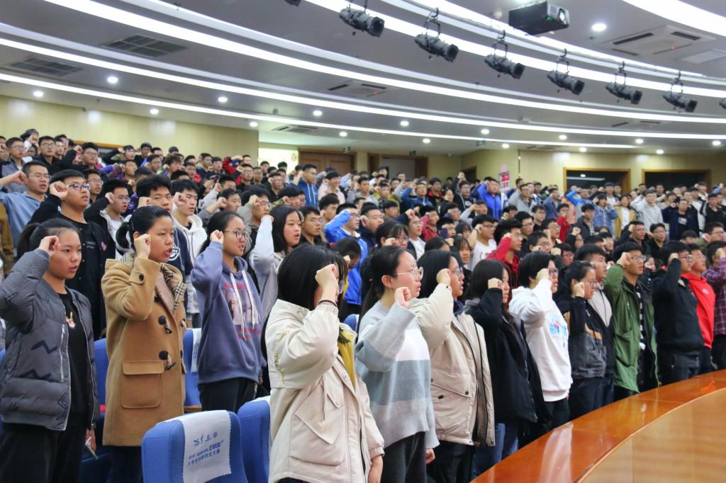 随后,2018级优秀成长导师代表尚禹老师和学生之星代表瞿博越同学作为代表进行发言。2019级各班学生代表带领全体大一同学发表成长宣言,言辞凿凿,表明了为未来奋斗的决心。主席台领导为优秀成长导师和学生之星进行颁奖并为2019级新生成长导师发放聘书。