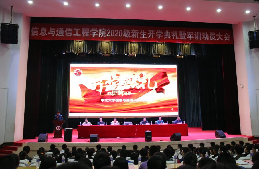 在庄严的国歌声中,大会拉开帷幕,全体师生肃穆而立,挺拔的身姿展现了信通学子昂扬向上、拼搏进取的精神风貌。学院院长杨风暴为新生做了学院的整体介绍,包括学院的历史沿革、师资力量、学科设置、以及教学科研等情况,鼓励学生在新的平台尽情展示自我才华,参与创新实践,希望全体新生能够仰望星空、脚踏实地、拼搏进取、超越自我!