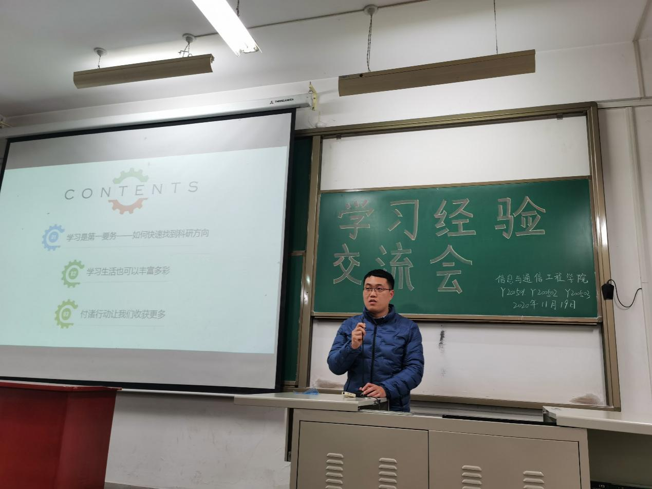 在13201H教室召开了研究生学习经验交流会。本次交流会邀请了2017级博士生燕慧超同学和2018级硕士生冯士杰同学担任主讲,学院2020级全体研究生新生到现场聆听。