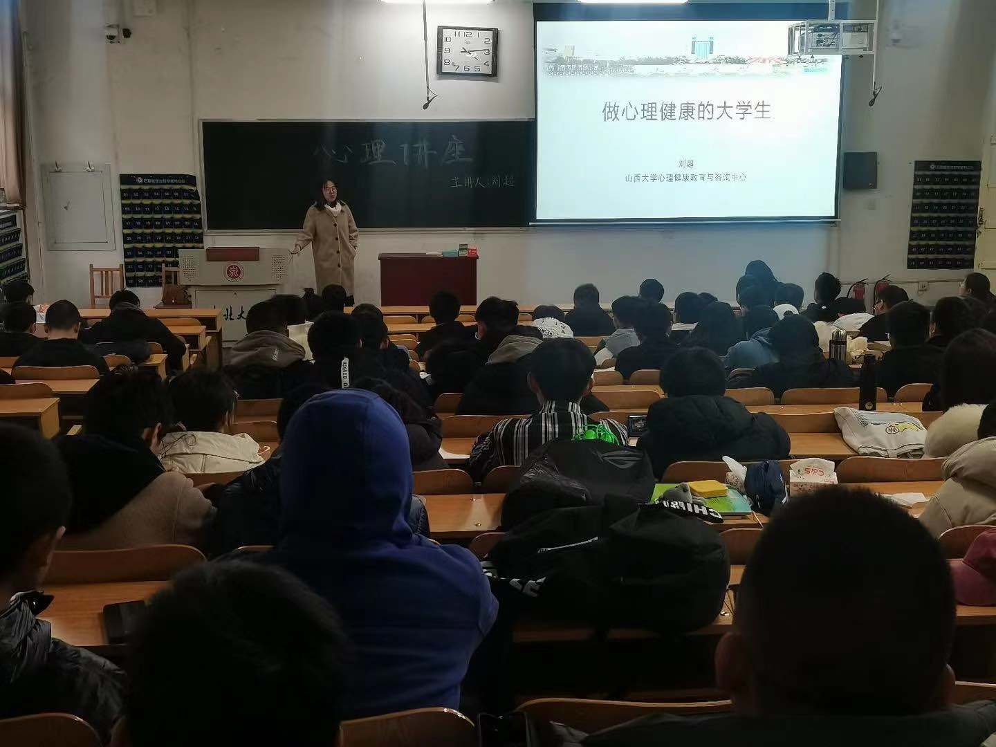 于12月8日下午16:00在10101H教室开展了以“心理小妙招—做心理健康的大学生”为主题的心理讲座。本次讲座邀请到山西大学大学生心理健康教育与咨询中心的专职教师刘超老师作为主讲嘉宾。