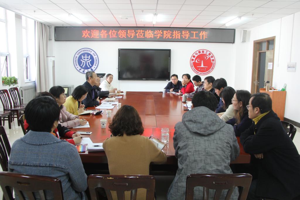 进行人事人才工作专题调研。院党委书记曹凤才、院长杨风暴、电工电子实验教学示范中心主任兼副院长王黎明、党委副书记兼副院长魏媛媛、副院长赵冬娥及学院教师代表共12人参加了调研会。
