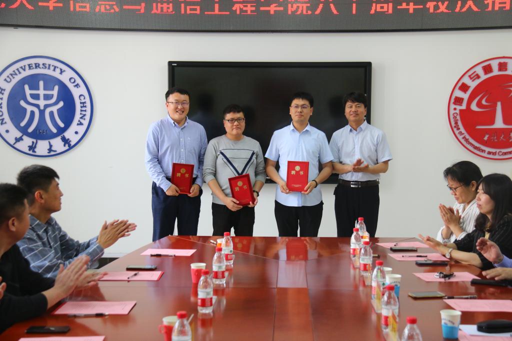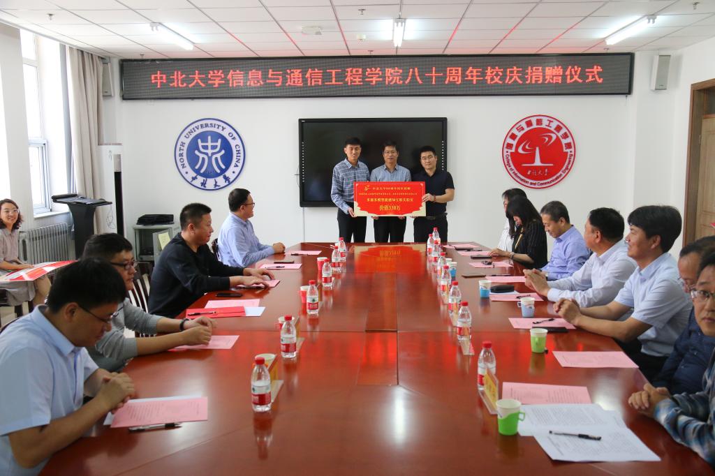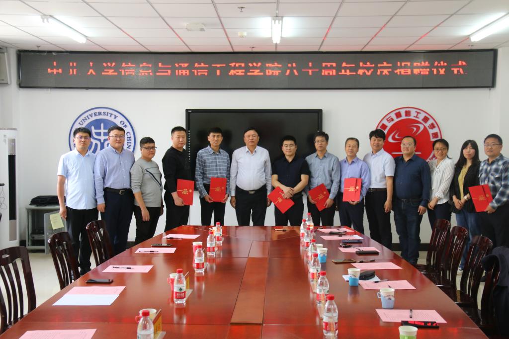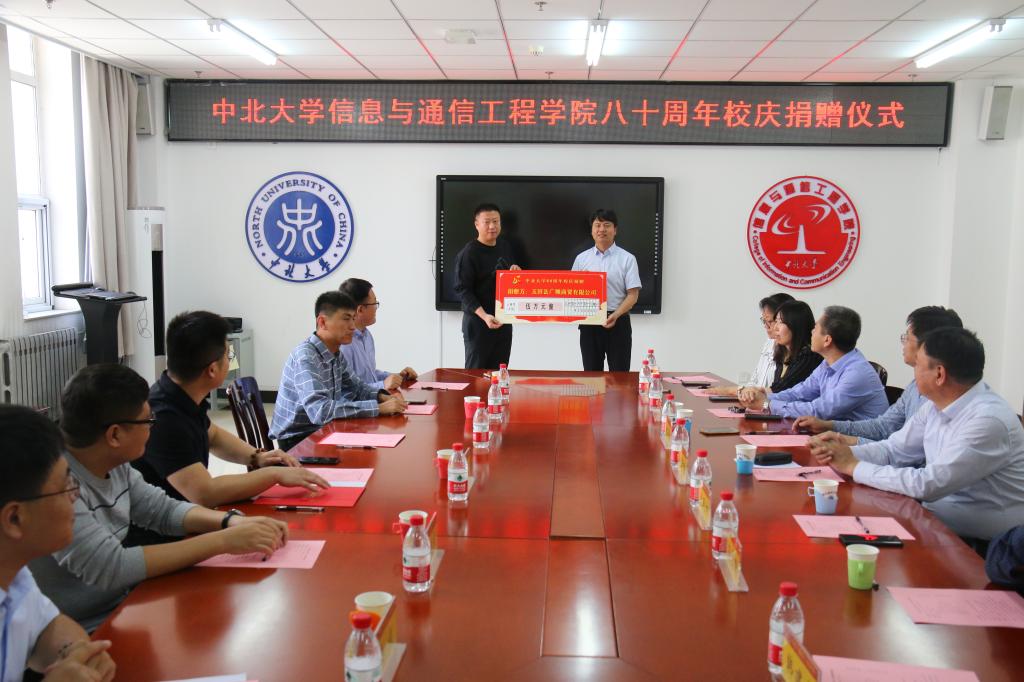 80周年校庆捐赠仪式在院楼713会议室隆重举行。山西灏峰源科技有限公司总经理郭文峰、北京方正世纪信息系统公司总经理李军、玉田县广顺商贸有限公司总经理静海涛,校友柴俊、张建峰、光建斌,第一会所