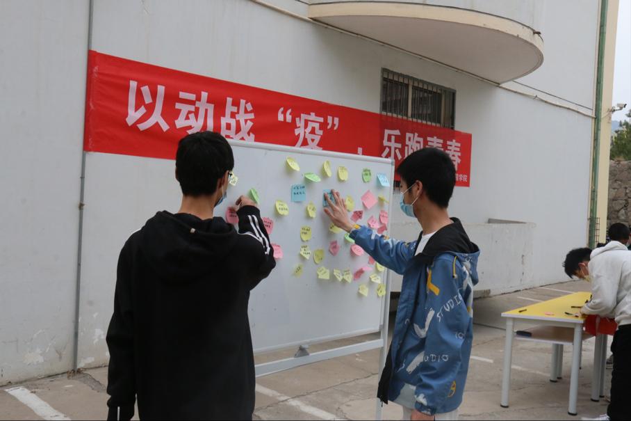 恰同学少年,风华正茂!乐跑活动开始前,大家领取了便利贴,写下自己的祝福后粘贴在心愿板上,定格了自己对抗疫的坚定信念。活动过程中,同学们同舟共济,万众一心,大家有秩序的列队起跑。无限的欢声笑语,洋溢的青春活力,该活动就像黑暗中的曙光,海上的灯塔,为同学们封校生活提供了多姿多彩的乐趣。