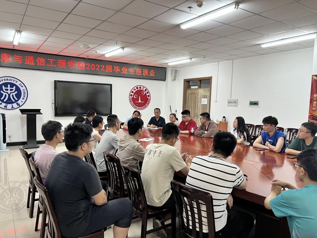 在院楼713召开2022届毕业生座谈会。院党委副书记魏媛媛、各专业负责人以及毕业生代表欢聚一堂,共叙大学四年的学习生活经历,并围绕学院的各方面建设开展了热烈的讨论。