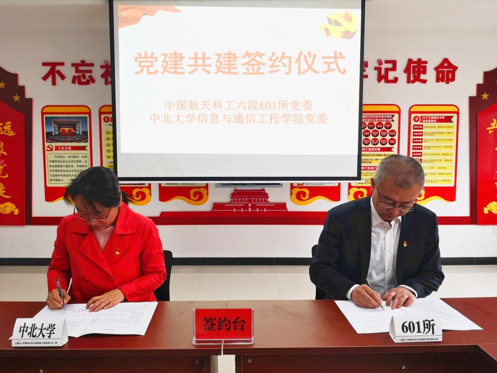 为对标一流,在创新发展的新形势下以党建推动创新、开放和共享发展理念,统筹实施宽领域、多途径、广范围党建共建新机制,不断提高学院党建水平,2019年4月19日上午信息与通信工程学党委赴呼和浩特与中国航天科工集团六院601所成功举行了党建共建合作签约仪式学院副院长王黎明、副书记魏媛媛、信息对抗技术教工党支部书记李凯,601所党委书记朱来贵、副书记宋和文等出席了本次活动,测试室党支部全体党员和在601工作的第一会所 校友代表参加了活动,活动由601所副所长徐星主持。