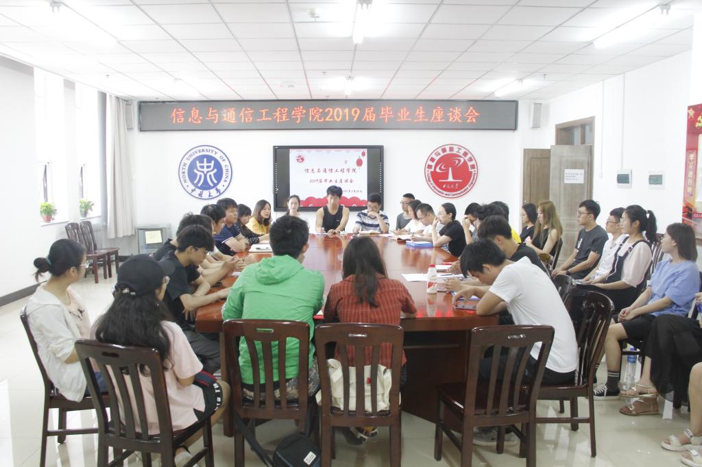 在院楼713会议室召开了2019届毕业生座谈会。出席本次座谈会的领导有院党委书记曹凤才、教学副院长赵冬娥、党委副书记魏媛媛、电子信息工程专业负责人韩建宁、信息对抗专业责任人姚金杰、生物医学工程专业负责人丁婷、通信工程专业教师代表李沅、光电信息科学与工程专业教师代表李永红、班主任代表陈淑霞,2019届各班毕业生代表30余人参加了此次座谈会,会议由学生科科长任雁老师主持。