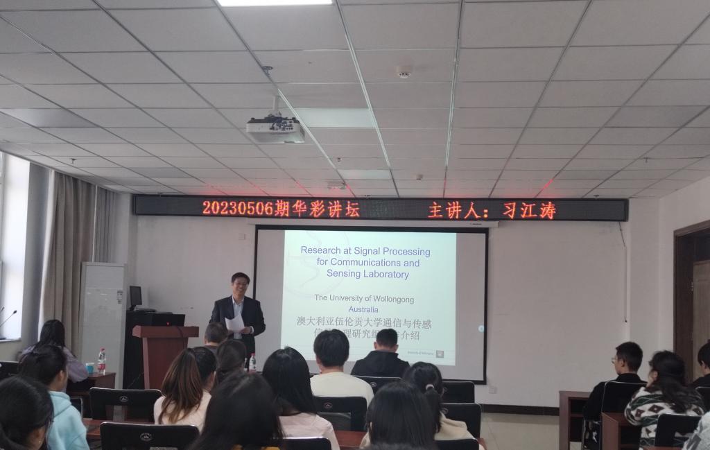 在科学楼B座715成功举办了研究生第20230506期华彩讲坛。本次讲坛特邀澳大利亚伍伦贡大学电气计算机与通信工程学院院长习江涛教授主讲,主题为《半导体激光器自混合干涉装置:原理和应用》,讲座由杨风暴教授主持,学院广大老师和研究生积极参与了此次学术讲座。