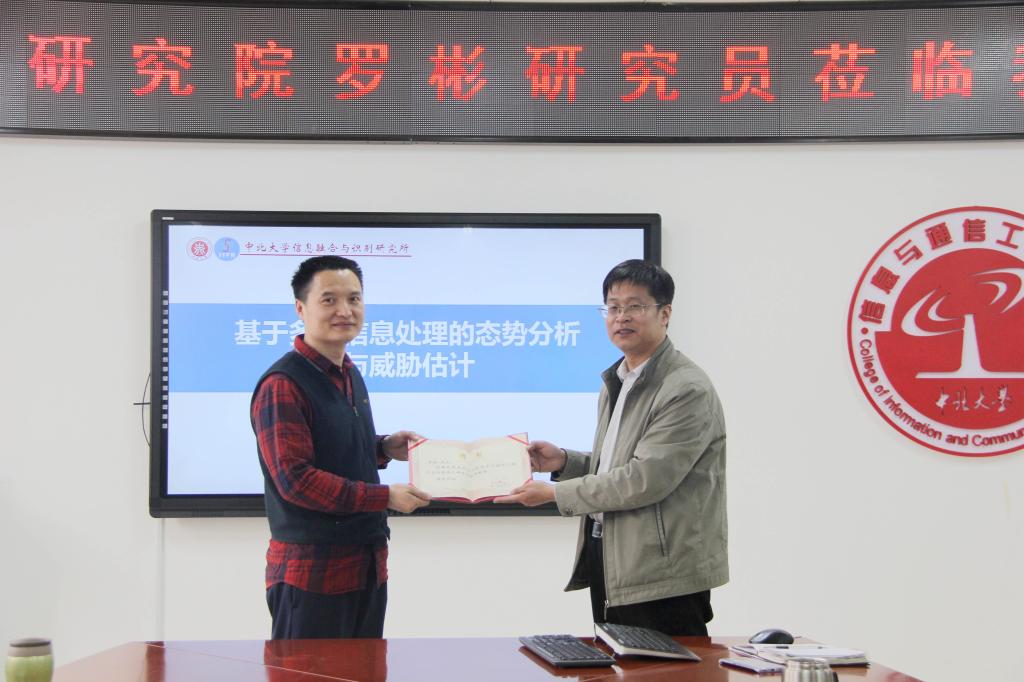 随后学院举行了硕士研究生兼职导师聘任仪式,杨风暴院长为罗彬研究员颁发了聘书。接着双方针对有共同研究基础的项目合作、研究生联合培养等具体细节又进行了更加深入地讨论。通过此次会议,可以进一步加强学院与校友间的密切联系,促进产学研合作取得更大的成果,发挥优质社会资源在培养人才中积极作用,为学校实现“双一流”建设目标贡献力量。
