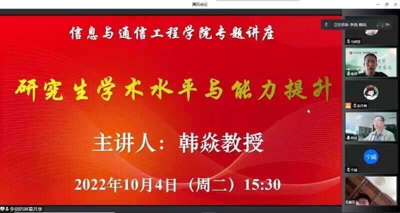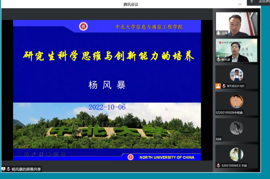 讲座分别邀请到信息与通信工程首席学科带头人韩焱教授,杨风暴院长、赵冬娥副院长等多位硕博士研究生导师,分别围绕科学研究、学术论文写作、研究生学术水平与能力提升、研究生科学思维和创新能力的培养以及学术性PPT制作方法探索等几个主题开展,内容丰富,为很多同学的科研工作提供帮助。