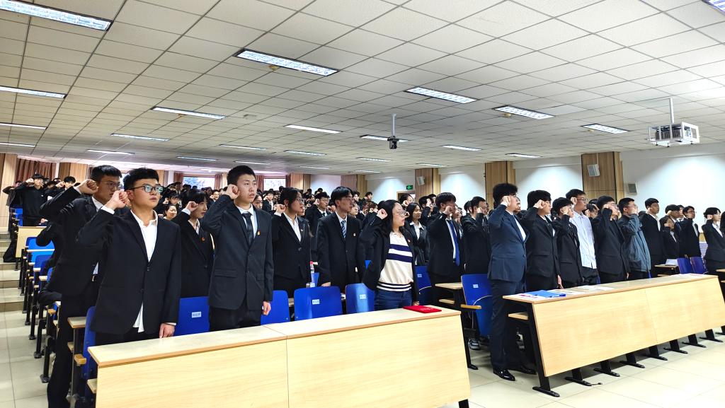 会上,2022年度优秀学生骨干代表高旭东回顾了过去一年的学生工作,同时对新任学生骨干提出了殷切期望。新一任学生会执行主席吴宜轩作为学员代表进行表态发言。全体学生骨干在分团委副书记宋安琪的带领下进行了庄严宣誓,他们信心满满,整装待发,满怀责任与担当朝着第一会所