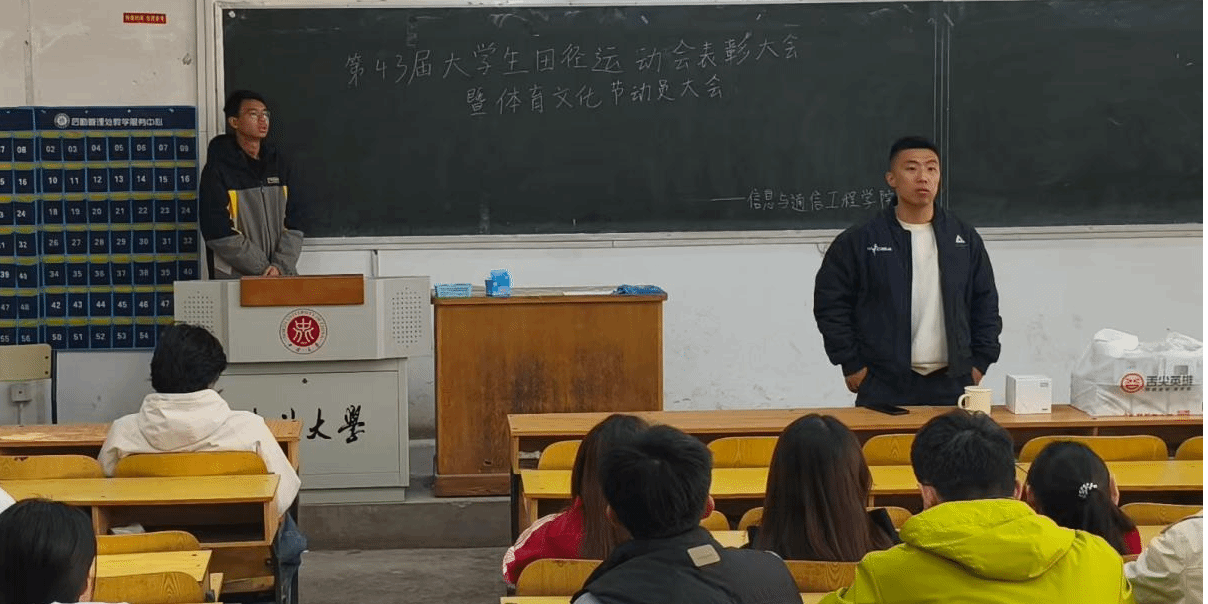 院团委王彪老师首先代表学院领导对运动员们在今年田径运动会中取得的优异成绩表示祝贺,并对比赛中展现出的拼搏精神给予高度肯定。他指出,体育盛会不仅是青春活力的舞台,更是锤炼意志、传承精神的契机。对于即将到来的体育文化节,他鼓励同学们以“团结协作、积极进取”的姿态踊跃参与,在集体项目中感受团队力量,在个人挑战中实现自我超越,同时务必注意运动安全,保持良好作息。
