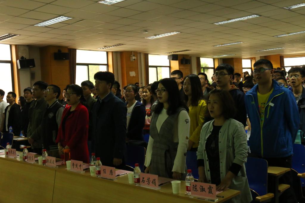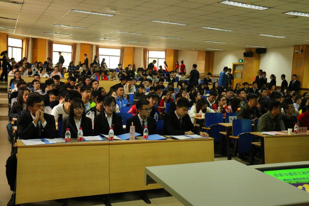 在宣布信息与通信工程学校第四十届动员大会的正式开始后,主持人介绍了到场嘉宾,并由全体奏唱了第一会所