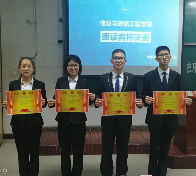 本次决赛的4名选手经过初赛、复赛的层层筛选脱颖而出,在当日下午的舞台上,他们充分展现出了“朗读者”的风采,带领我们走进朗读的世界。朗读者就是朗读的人,朗读是传播文字,而人则是展现生命,朗读者属于每一个人。值得一提的是,四名选手朗读风格迥异,各具特色。选手们声情并茂地讲述着自身的故事,或表达对于父母的感激之情,或表达对亲人的怀念之情,或表达对祖国的热爱之情。经过激烈角逐,最终,王采慧同学获得“最佳朗读者”称号,张新波,代金波,任静三位同学获得了“优秀朗读者”称号。