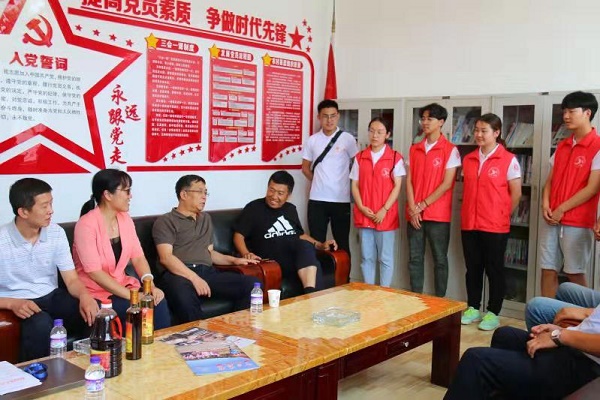 由于路途遥远,薛书记一行人经过一早上的奔波于正午十二点抵达西怀远村,烈日抵不住薛书记一行人的关切之心,薛书记到来之后,第一时间就关切的对实践队的实践工作进行了解,询问大家的工作进展,关心学生们的食宿问题,同时为实践队成员带来了牛奶、面包等食品,亲切地对大家说:“同学们一定要注意自身安全,身体是革命的本钱,不要在烈日下中暑了。”让我们实践团的每一位成员在异乡感受到了家的温馨。