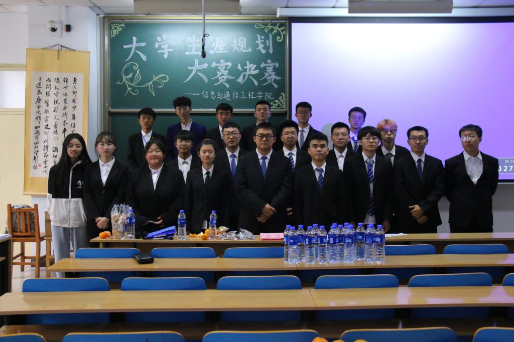 在主持人的宣布下,大赛正式开始,选手依次登场,六位选手各抒己见,无不展示了自己对大学生涯的深刻规划,同时大赛也开展了一系列趣味游戏,为紧张刺激的大赛带来了欢乐。最后便是最振奋人心的时刻——颁奖典礼。在主持人报出颁奖名单之后,参赛选手按名次依次上台领奖,袁磊同学以第一名的优异成绩代表信息与通信工程参加校级大学生涯规划大赛。