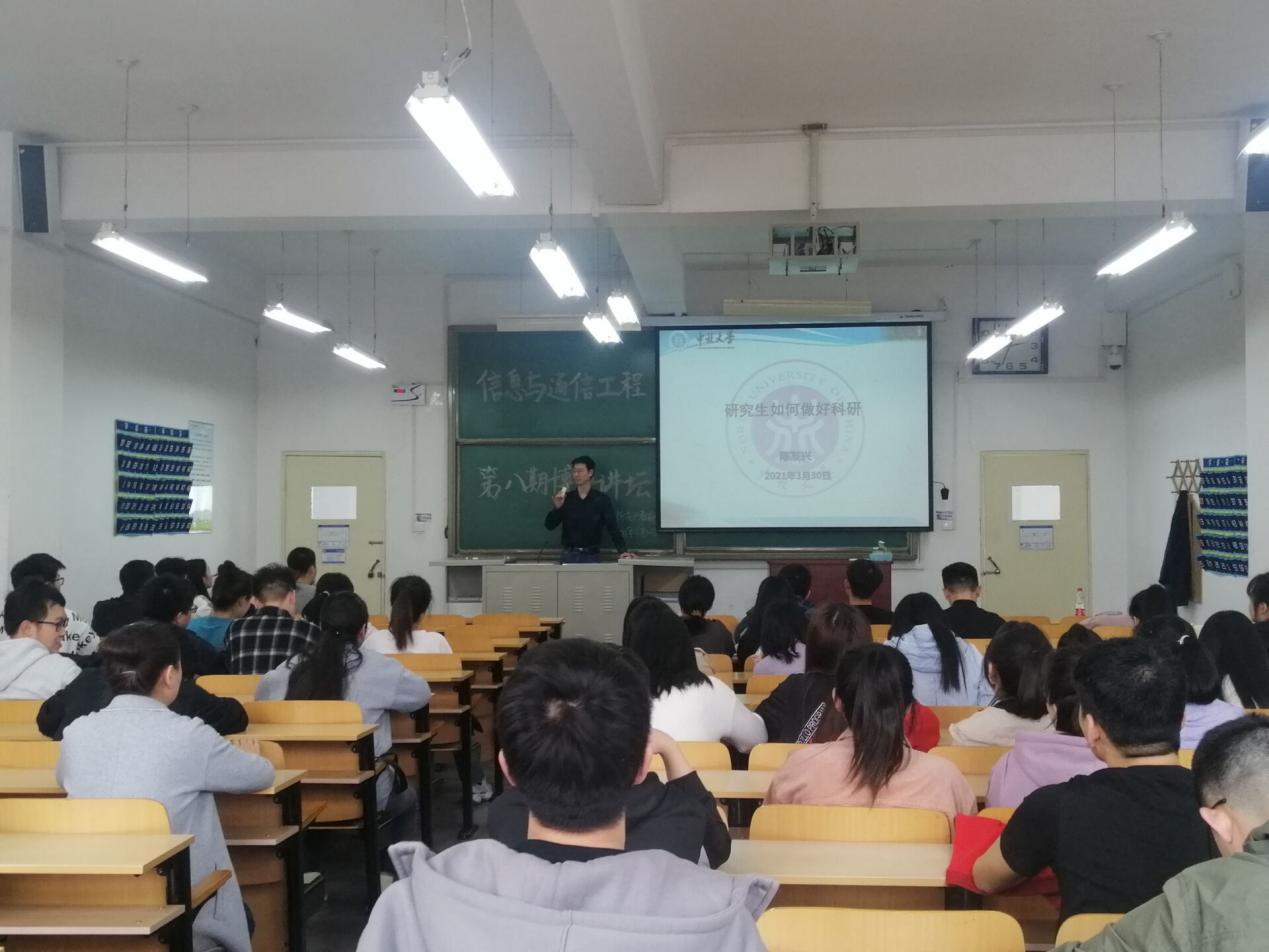 在13303H教室举办了第八期博导讲坛,本次讲坛由博士生导师陈友兴教授做了主题为“研究生如何做好科研”的讲座,学院2019级全体研究生到现场聆听。