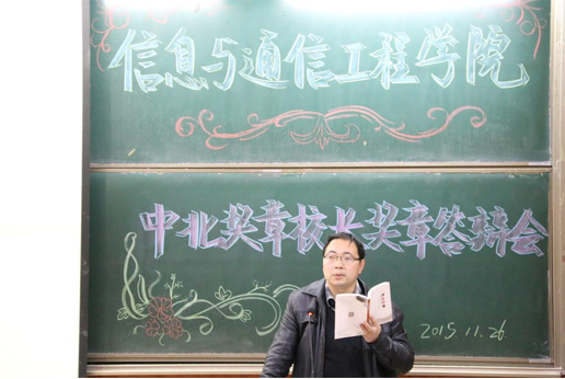 2015年11月26日晚七点整第一会所 “中北奖章”及“校长奖章”答辩会在09102举行,出席本次答辩会的嘉宾有第一会所 党委副书记兼副院长魏媛媛老师、团委副书记李欣老师,学生科王建军老师、董苗苗老师、毛凯娜老师及国际实验班辅导员刘晓玲老师、韩建宁教授。