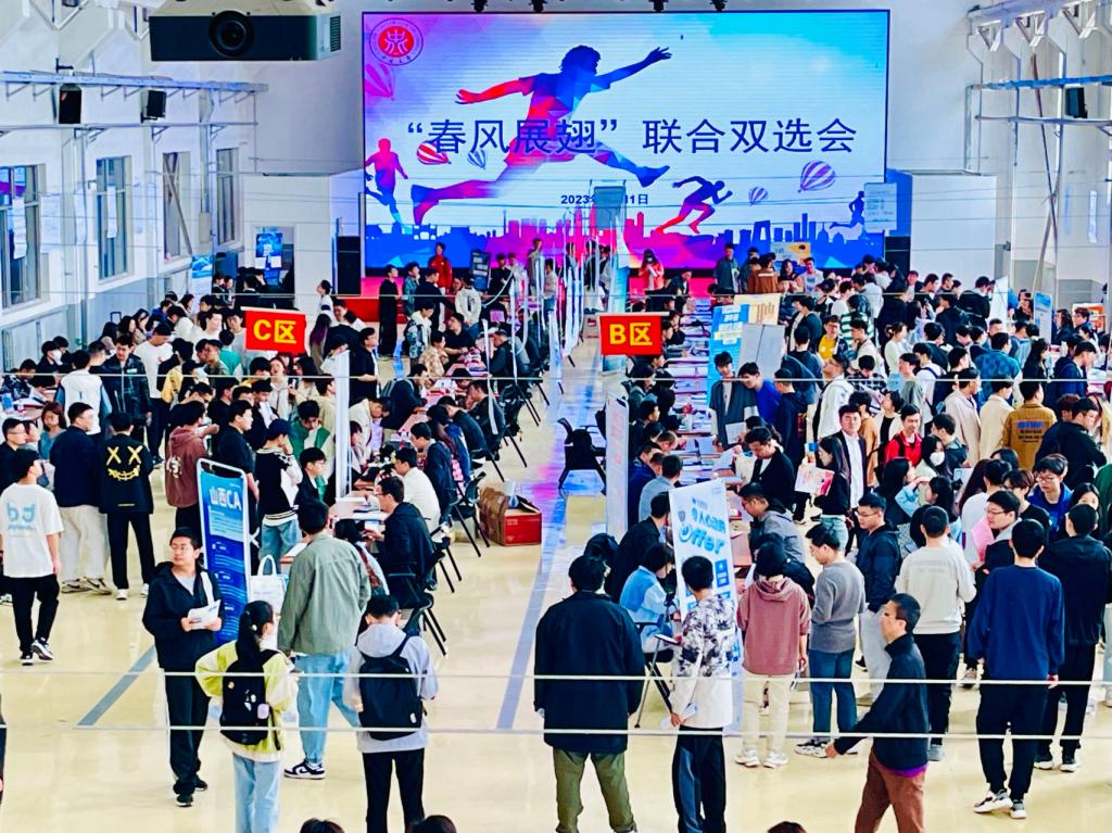 “春风展翅”联合招聘会。招生与就业工作部部长李博、各承办学院党政领导受邀莅临招聘会现场,调研企业需求,介绍我校就业工作概况,推介优秀毕业生。