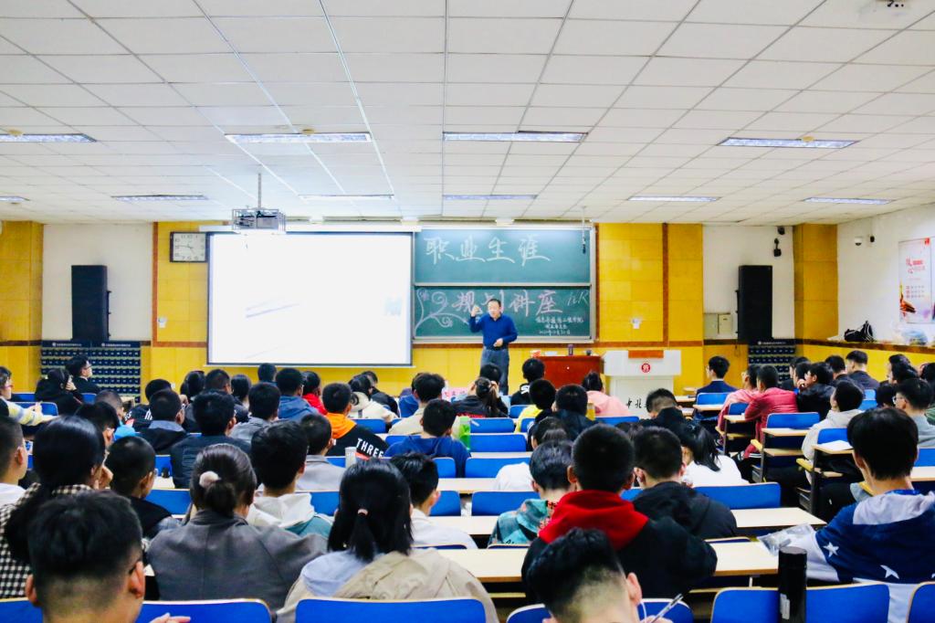招生与就业工作处副处长刘宝华老师受邀作为主讲嘉宾,近300名学生参加了本次讲座,到会的还有院学生科张永玲和孟伟老师。