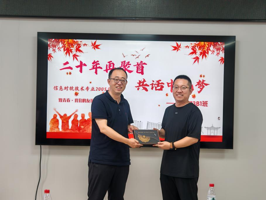 信息对抗技术专业本科2001级01073B1班毕业20周年师生座谈会在科学楼B座713会议室举行。来自全国各地校友重返母校,与学院领导班子成员和信息对抗技术专业教师代表,欢聚一堂,共忆学校美好时光,畅谈学院发展。座谈会由信息对抗技术专业负责人韩星程主持。