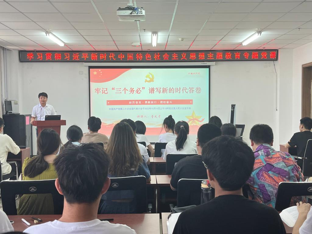 党委书记曹凤才为师生党员讲授“牢记‘三个务必’谱写新的时代答卷”专题党课,学院党支部书记、师生党员代表共计80余人到场聆听。
