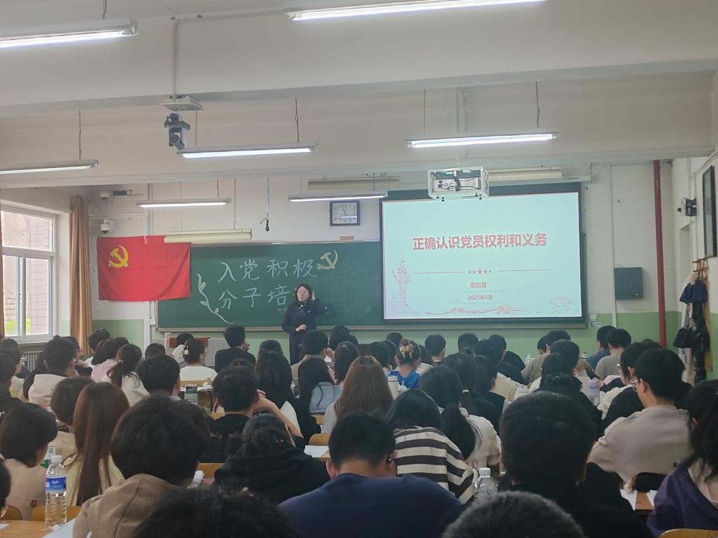 4月12日,党课培训在01101H教室正式启动。上午,曹凤才老师讲授《党的光辉历程》,系统回顾中国共产党百年奋斗历程,增强了学员的历史自信和政治认同。随后,孙俊伟老师带来《入党流程与文书写作》,讲解入党程序及文书撰写要求,强调思想真实和政治立场的重要性。下午,李秀玲老师讲授《牢记党的初心 践行党的宗旨》,引导学员坚定理想信念、勇担责任使命。常旭青老师讲授《党员的权利和义务》,从党章出发,明确党员应履行的责任义务,强化组织观念。