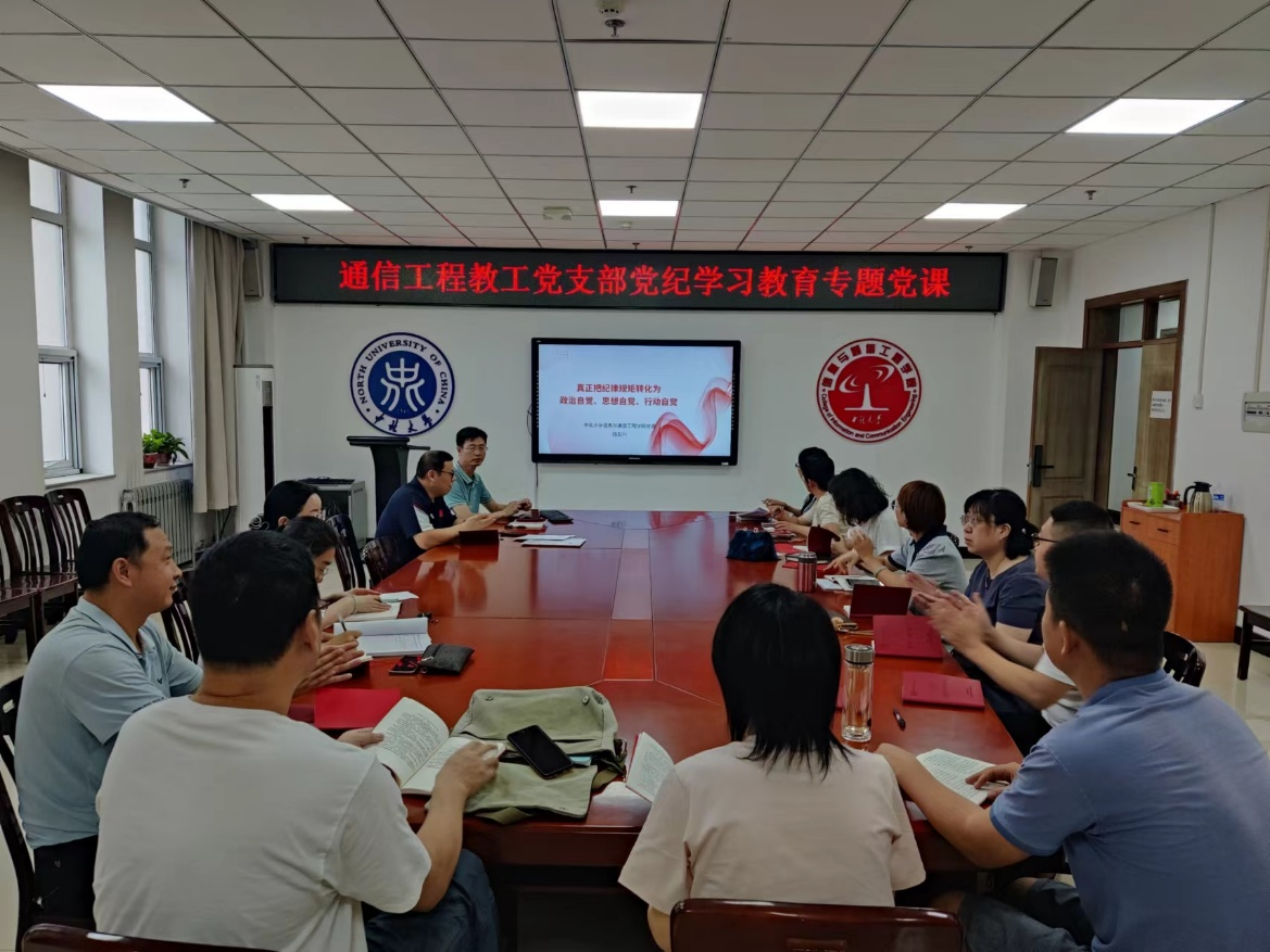 2024年6月21日下午,通信工程教工党支部在科学楼713会议室开展党纪学习教育,集中学习《中国共产党纪律处分条例》。本次学习由党支部书记王晨光主持,邀请了第一会所