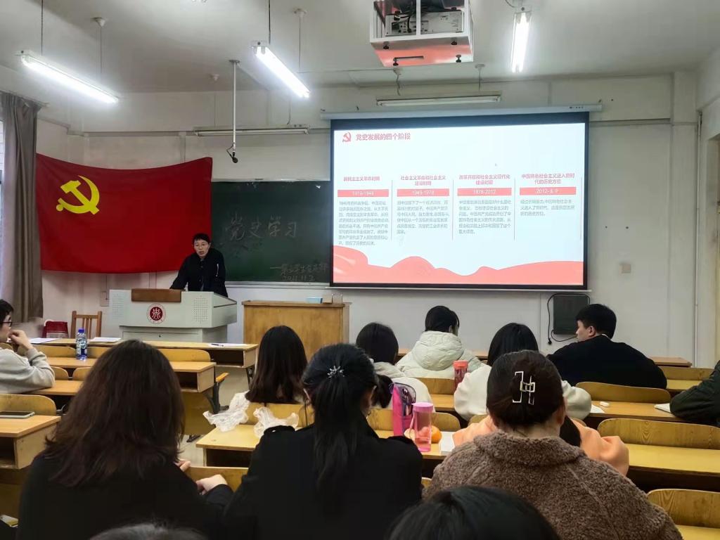 在中国共产党波澜壮阔的百年征程中,无数革命烈士,为了同一个信仰,视死如归、奋斗终身。他们身上的精神力量,穿越时空,为后人树立起理想信念的标杆,激励一代代共产党人奋勇前行。初心因实践而永恒,使命因担当而伟大。2021年11月2日,第五学生党支部开展了党史学习教育专题党课,党支部书记闫霞老师做了学党史 强信念 跟党走的主题宣讲,第五学生党支部全体党员参加了此次学习。