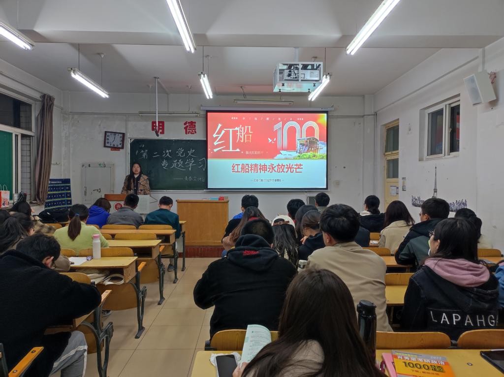 活动最后,同志们对于红船精神有了深刻的认识,然后唐馨雨同学以自由讨论并分享的形式,带领大家学习了井冈山精神,太行精神等,使大家对党史有了更加清晰的认识。会后,同志们纷纷表示会更加努力学习,从党的百年风雨历程中汲取奋斗力量。为国家为社会贡献一份青春力量。